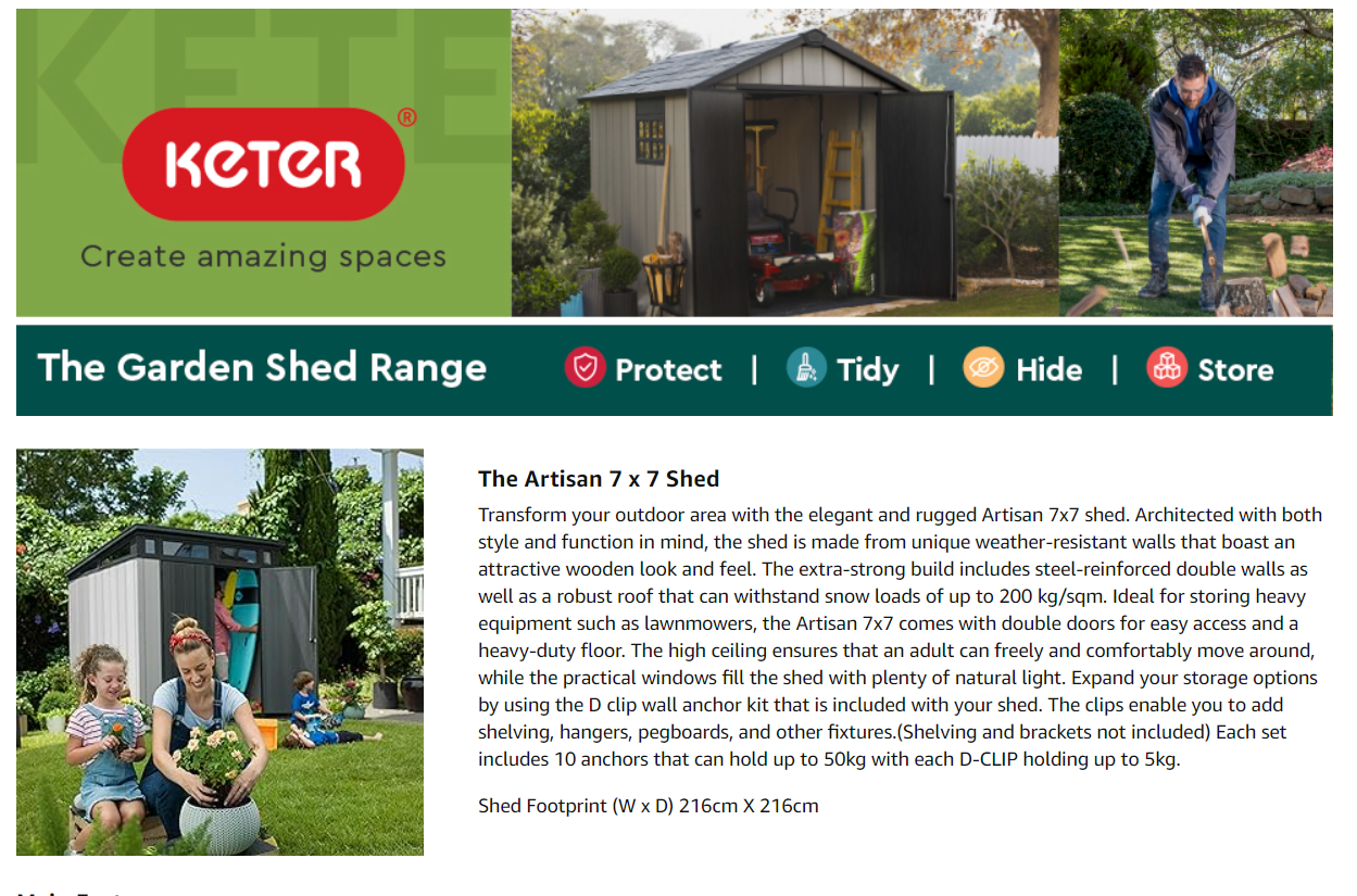 • A premium ideal outdoor storage solution for all garden tools and equipment, garden furniture including BBQ's, bicycles and DIY tools